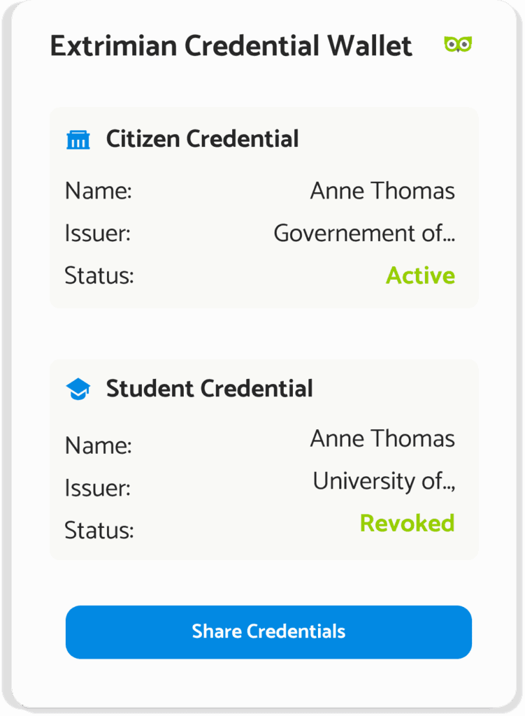 The Extrimian Credential Wallet for digital data, gives back the control of their identity to the users, where they really belong.